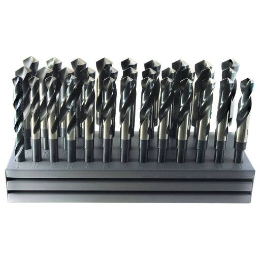 View full detailsDrillco Cutting Tools 32 Pc S&D Flat Stand Set 1/2-1 with Drill 1000F32 Product Description High Speed Steel Bright & Black Fractional 1...