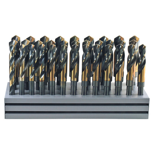 View full detailsDrillco Cutting Tools 32 Pc S&D Drill Bit Stand 1/2-1 1000N32 Product Description High Speed Steel Black & Gold Fractional Nitro 1/2" Sh...