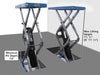 The Atlas FM9SL 9,000 lb. flush mounted scissor lift is the perfect choice for those service facilities that need to maximize the number of vehicle lifts per service area square foot. If you like the “clean floor look” for your service department (no above ground lifts), then the Atlas FM9SL flush mounted scissor lift offers the perfect alternative. Unlike “old school in-ground” lifts, the flush mounted lift requires minimal excavation and the electric/hydraulic power unit is easily accessed during periodic maintenance. The flush mounted platforms offer no “above ground” obstruction and the platforms can be “driven over” from any direction so that a vehicle may be properly positioned in the tightest of spaces. The Atlas FM9SL has both front and rear platform extensions that can be used when lifting a long wheel base pick-up truck. As with any scissor lift that is completely open (no cross support bar in the front or rear to keep the platforms level), the operator must make sure that the vehicle's frame is positioned at least 6 inches from the inside of the platform. If too much weight is positioned near the edges of the platform (closer than 6 inches from the inside edges), the platforms may become “pigeon toed” and damage may occur. We sell the Atlas scissor lift support bar kit to disperse the narrow frame weight over the entire platform lifting surface